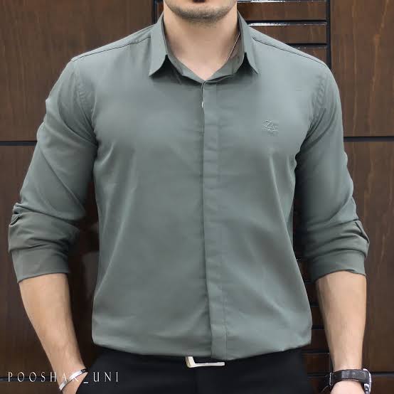 پیراهن مردانه دکمه مخفی جنس دوشین رنگ طوسی