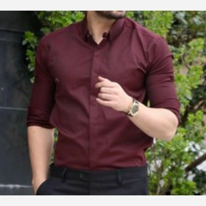 پیراهن اسپرت مردانه دکمه مخفی رنگ زرشکی