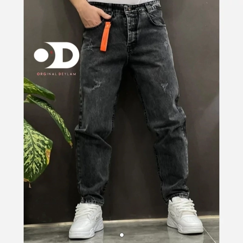 شلوار لی مام استایل مردانه رنگ زغال سنگی