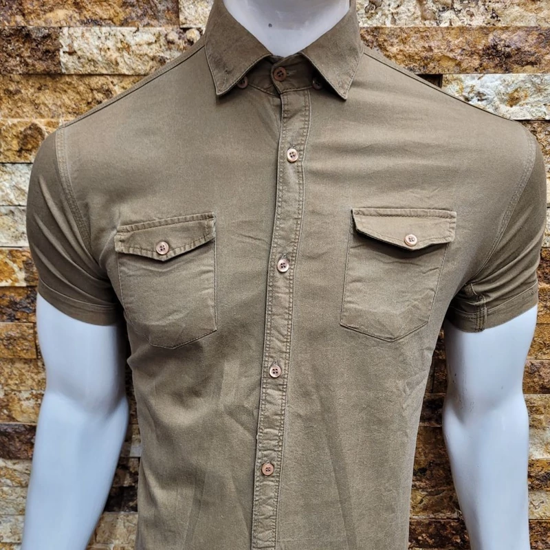 پیراهن اسپرت مردانه دکمه مخفی رنگ خردلی