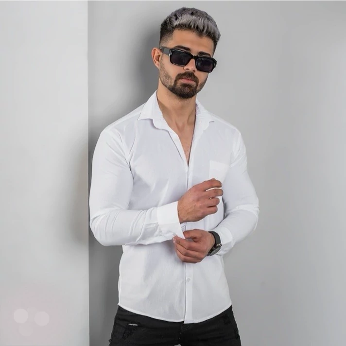 پیراهن مردانه قاپک مخفی جنس دوشین رنگ سفید