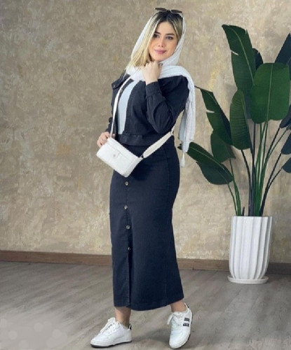 ست کت و دامن طرح لی زنانه رنگ زغال سنگی