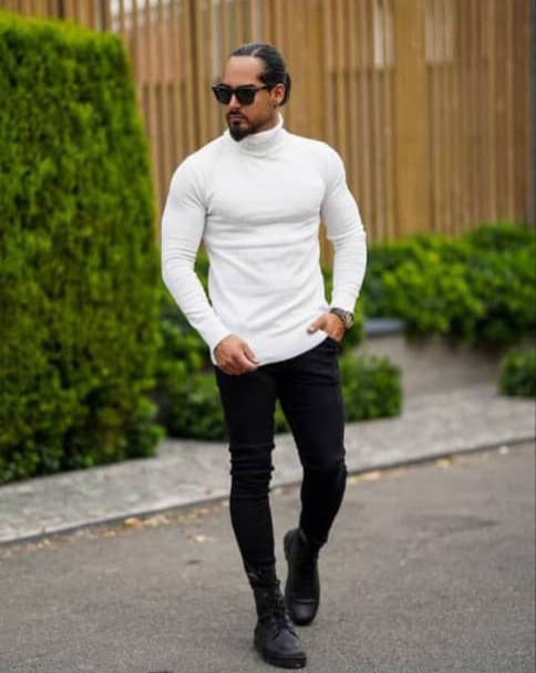 ناموجودبافت یقه اسکی ضخیم مردانه رنگ سفید