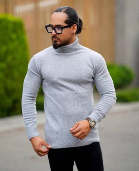 ناموجودبافت یقه اسکی ضخیم مردانه رنگ طوسی