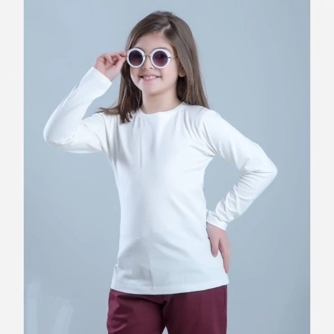 زیر سارافونی بچه گانه(دخترانه) رنگ سفید یقه گرد یقه کش بافت اعلا جنس پنبه مدل آستین دار