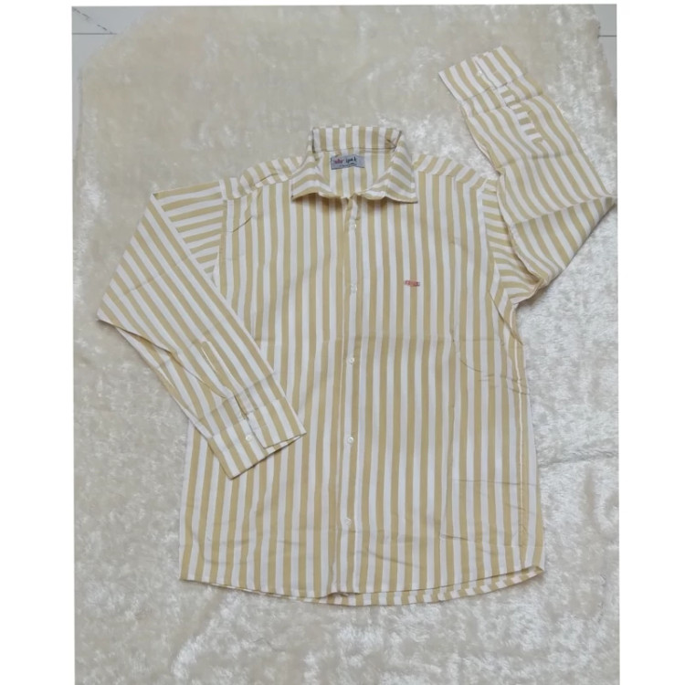 پیراهن مردانه راه راه رنگ سفید و کرم