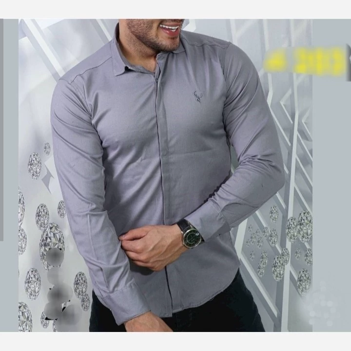 پیراهن مردانه اسپرت دکمه مخفی رنگ طوسی