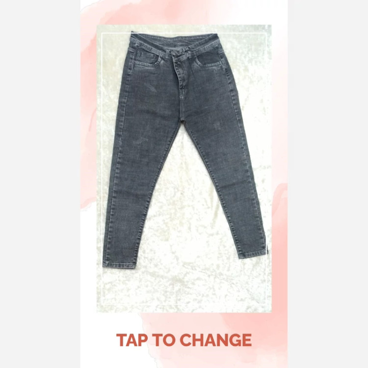 شلوار لی اسکینی زنانه رنگ طوسی راندوم