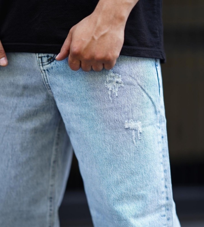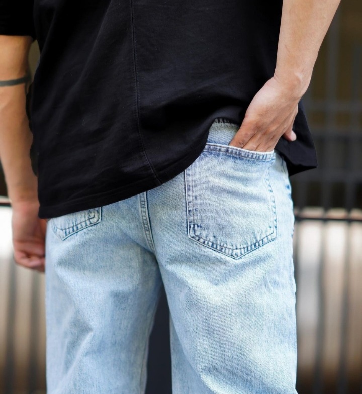 شلوار لی بگ مردانه رنگ یخی زاپ دار