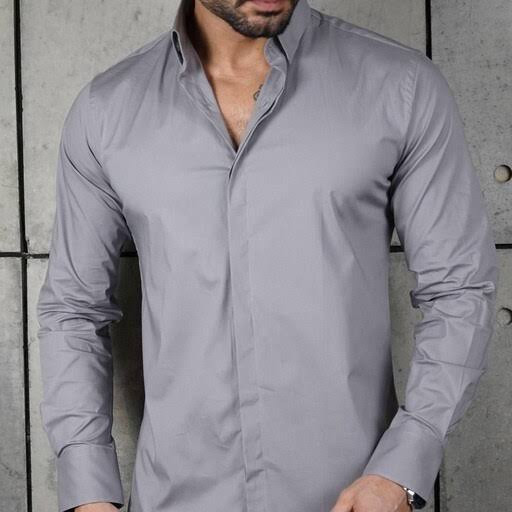 پیراهن مردانه سایز بزرگ دکمه مخفی رنگ طوسی جنس دوشین ضدچروک